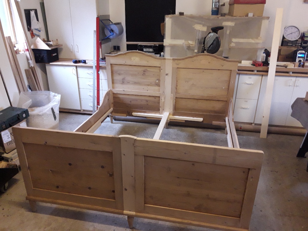 Zwei Einzelbetten in Breite zu einem Ehebett vereint und die Länge auf die Liebenden verlängert angepasst. So werden die Betten auch weiterhin eine lange Zeit genutzt.