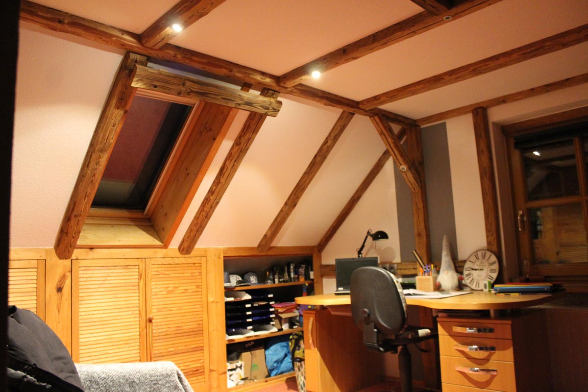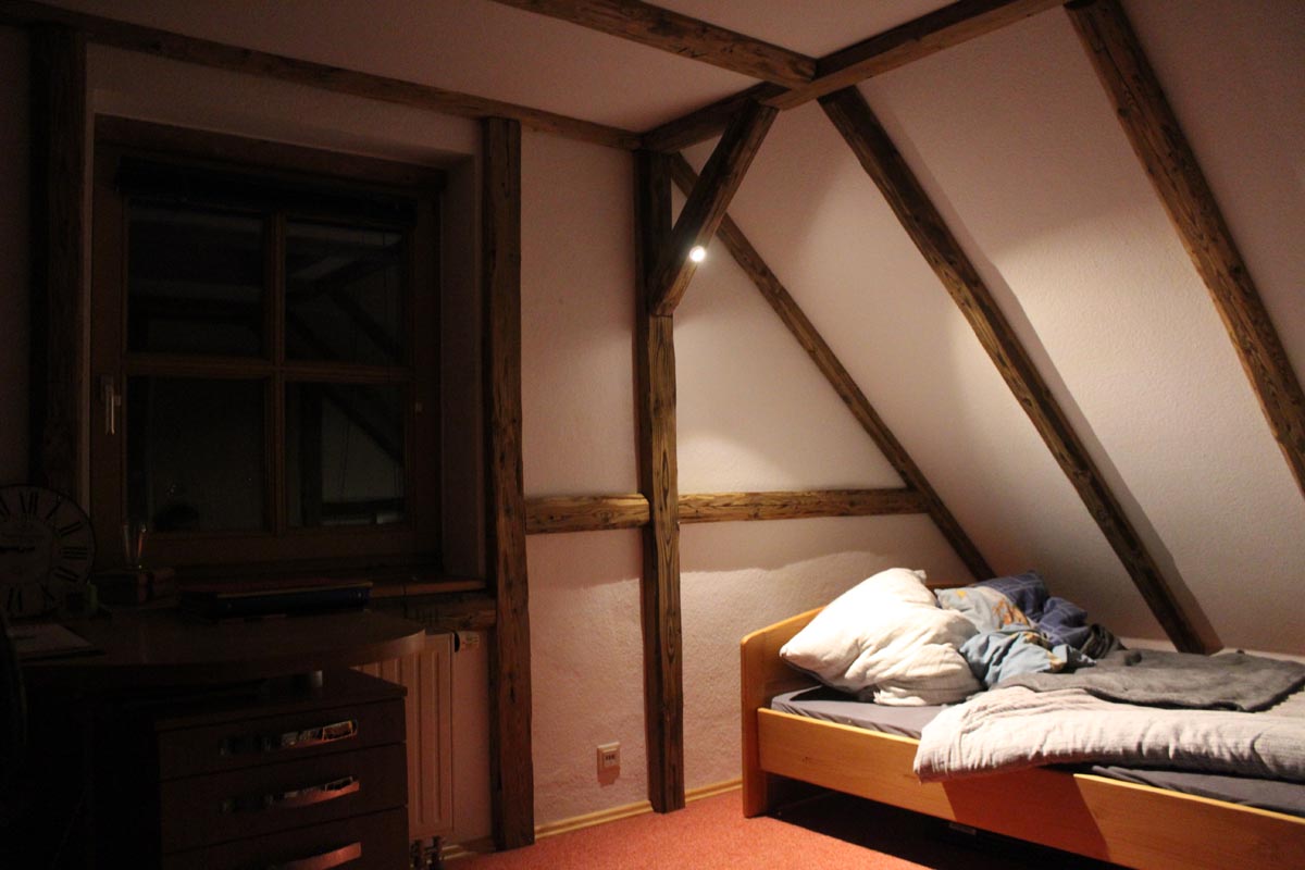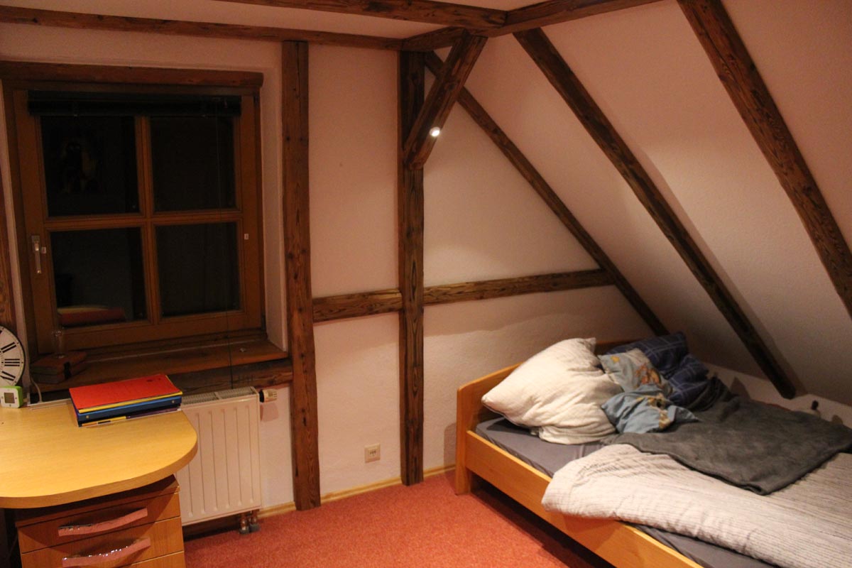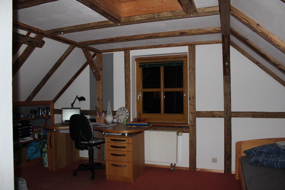 Nicht nur Tapeten oder Farben können eine Raum verändern. Durch die Imitition eines Fachwerkes, wird die Änderung viel tiefgreifender. Denn hier wird auch die Struktur verändert. Die natürliche Ressource Holz wertet zusätzlich das Zimmer auf. Im Vorher/Nachhervergleich kommt dies besonders zur Geltung.