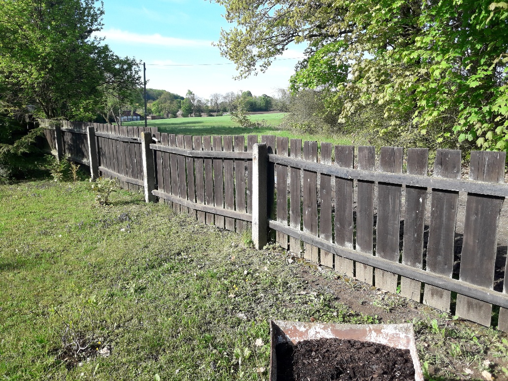 Etwas in die Jahre gekommen, wurde dieser alte Zaun ersetzt, ohne das er seine Natürlichkeit einbüßt. Nun ist er nicht nur Grundstücksgrenze, sondern auch ein bereicherndes Detail.