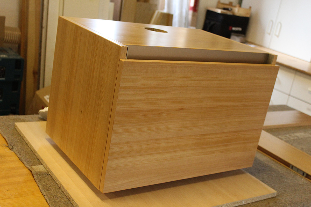 Diese Möbel entstanden für eine Wellnessbereich im Keller des Hauses. Sie vervollständigen Sauna, Wanne und Entspannungsraum. Genau wie in der Sauna sollte sich hier Holz als natürlicher Rohstoff wiederfinden.