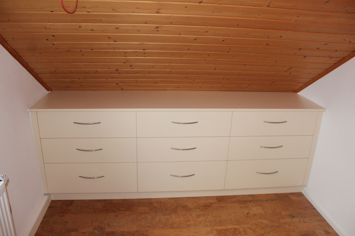 Wenn die Höhe auch nicht reicht, um darunter laufen zu können. so passt immer noch ein Schrank darunter, um den Ort als Stauraum nutzen zu können. Passgenaue Symetrie lässt ihn wie natürlich gewachsen erscheinen.