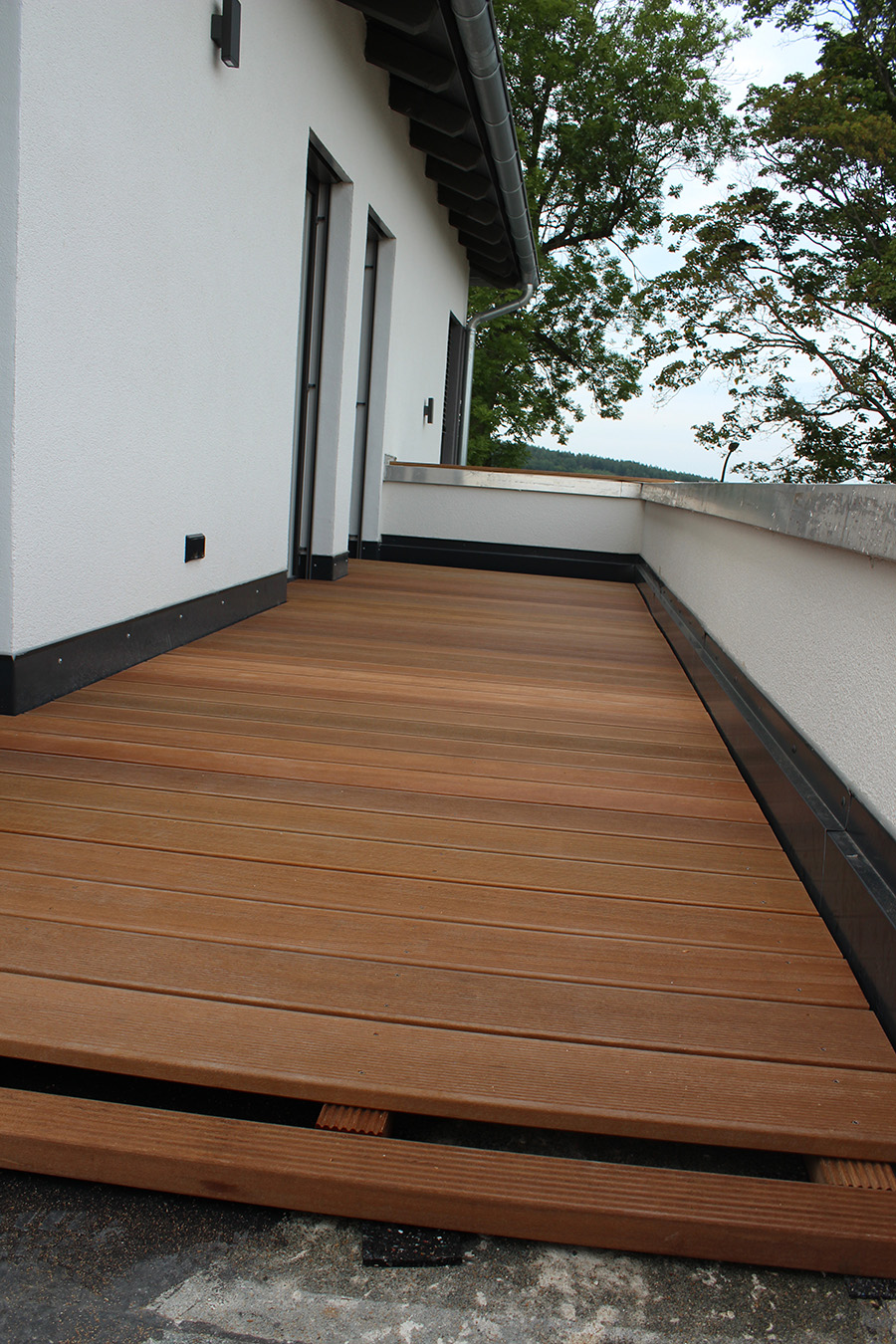 Der neue Terrassenboden mit Bankirai ist das neu Schmuckstück der Terrasse. Das Holz schmeichelt sowohl dem Auge, als auch den Füßen. Hier lässt es sich Feiern und Entspannen.