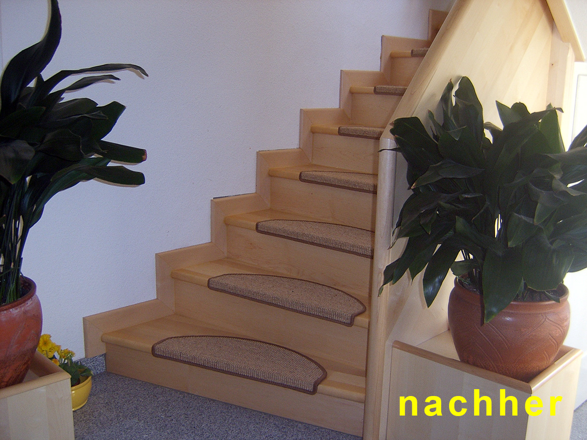 Die renovierte Treppe verbindet jetzt zeitlose Optik mit neuer Stabilität. Abgenutzte Elemente wurden ersetzt, Oberflächen veredelt und Details sauber überarbeitet. Das Ergebnis ist ein Treppenaufgang, der wieder einladend wirkt und sich perfekt in den Wohnraum einfügt.