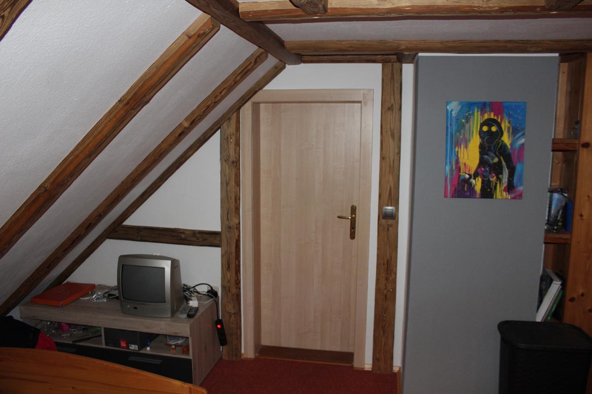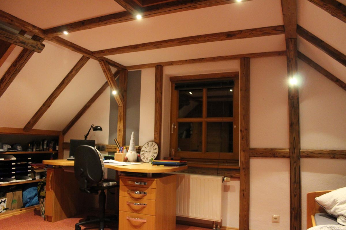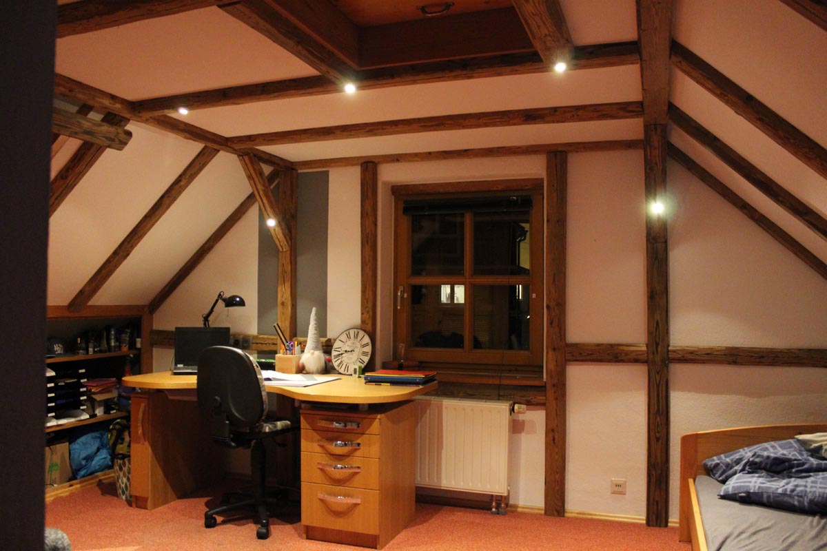 Nicht nur Tapeten oder Farben können eine Raum verändern. Durch die Imitition eines Fachwerkes, wird die Änderung viel tiefgreifender. Denn hier wird auch die Struktur verändert. Die natürliche Ressource Holz wertet zusätzlich das Zimmer auf. Im Vorher/Nachhervergleich kommt dies besonders zur Geltung.