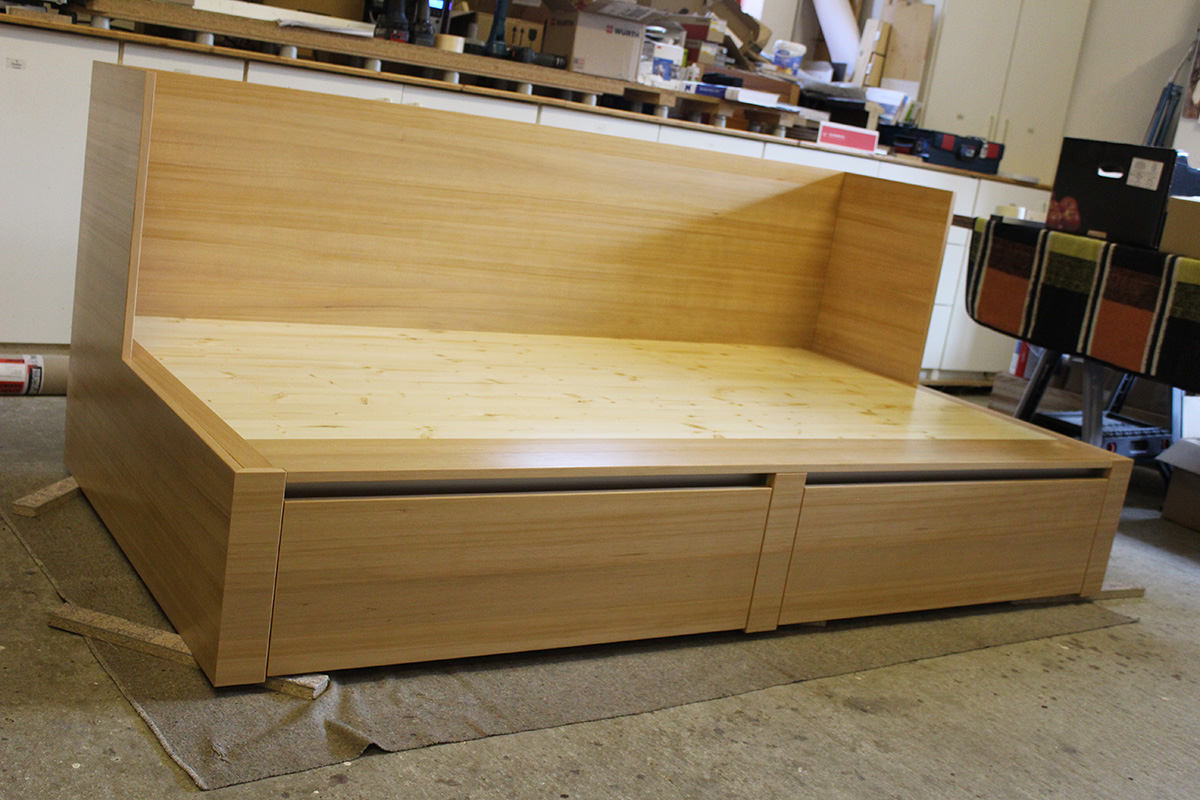 Diese Möbel entstanden für eine Wellnessbereich im Keller des Hauses. Sie vervollständigen Sauna, Wanne und Entspannungsraum. Genau wie in der Sauna sollte sich hier Holz als natürlicher Rohstoff wiederfinden.
