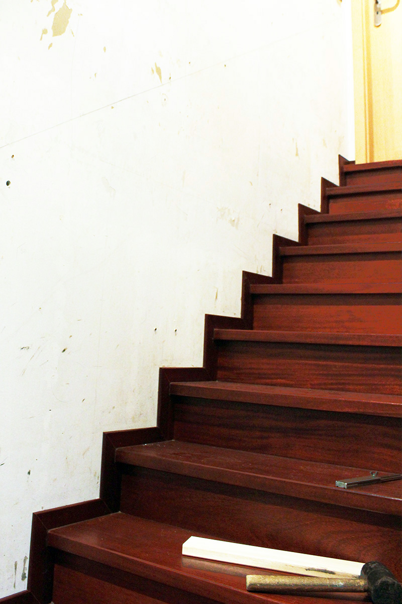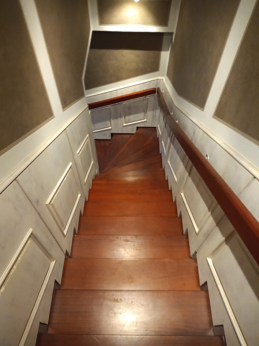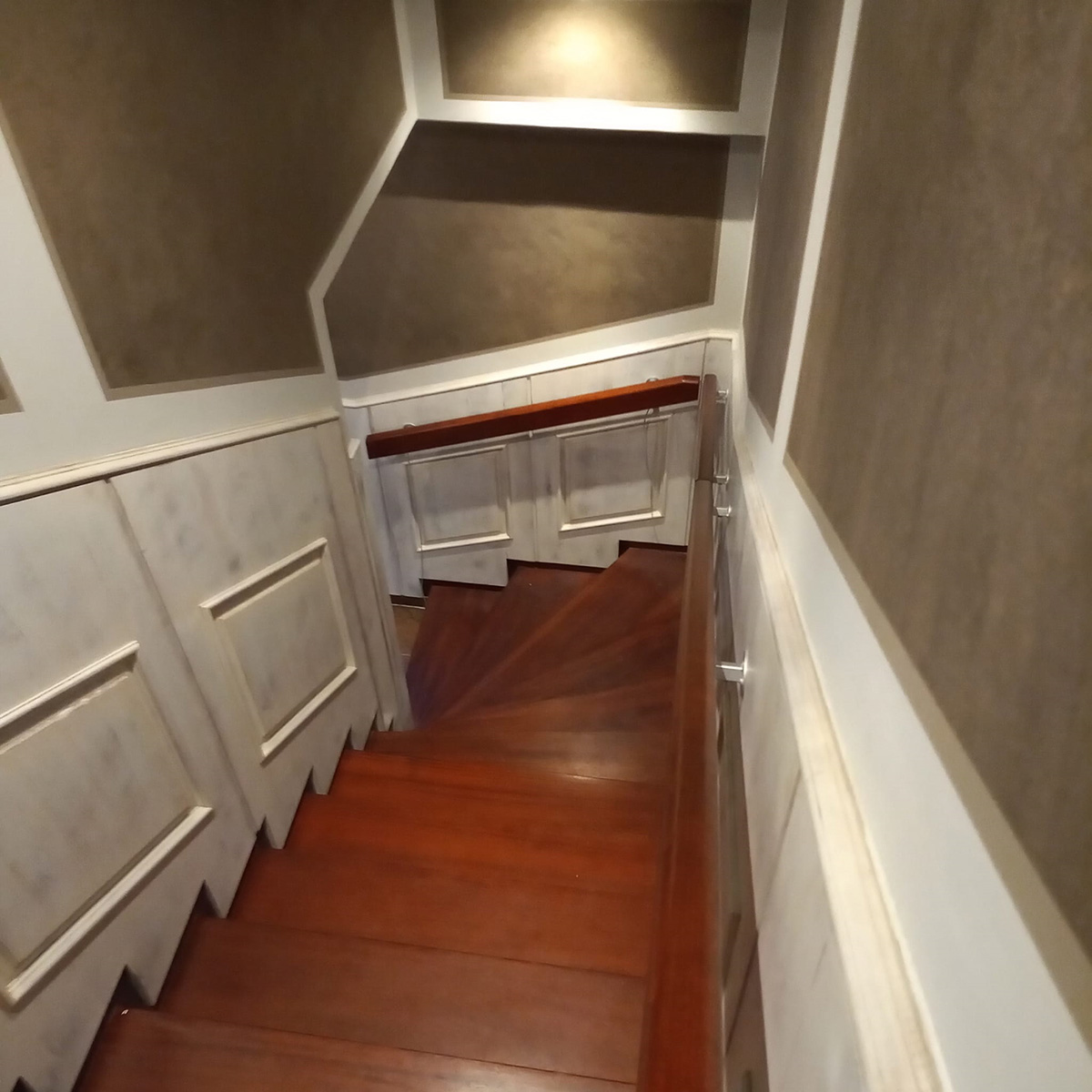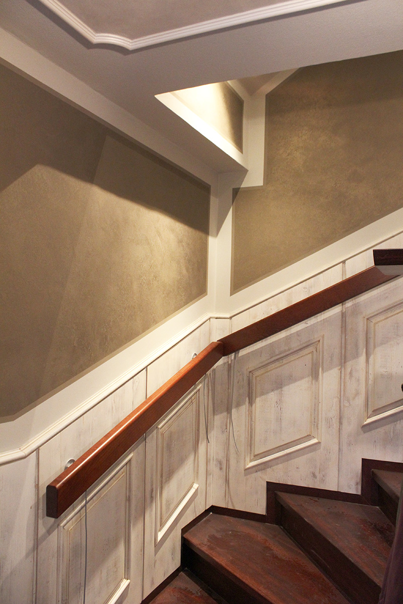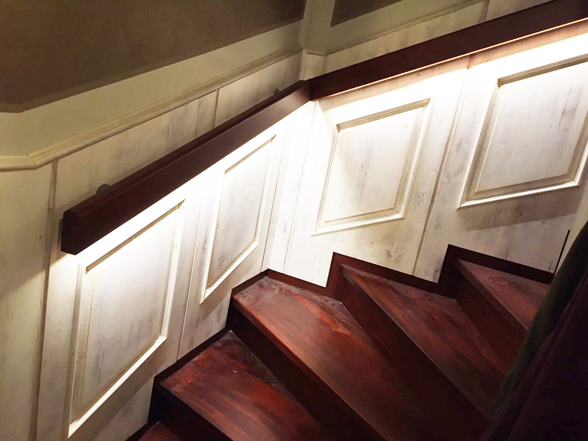 Der Treppenaufgang wurde mit präzise gefertigten Stufen und einem schlanken Geländer aufgebaut, das sich harmonisch in den Raum einfügt. Unter der Geländerunterseite sorgt eine integrierte, indirekte Beleuchtung für eine sanfte Lichtlinie, die den Aufgang sicher und zugleich modern inszeniert. So entsteht eine klare, elegante Verbindung zwischen Funktion und Design.