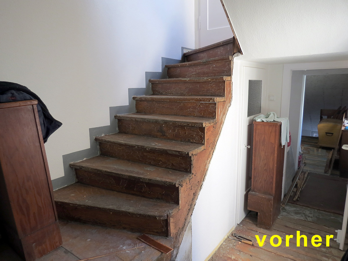 Die renovierte Treppe verbindet jetzt zeitlose Optik mit neuer Stabilität. Abgenutzte Elemente wurden ersetzt, Oberflächen veredelt und Details sauber überarbeitet. Das Ergebnis ist ein Treppenaufgang, der wieder einladend wirkt und sich perfekt in den Wohnraum einfügt.